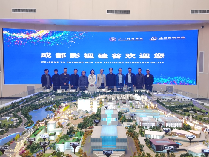 11月13日,校党务负责人沈端良、美术设计系主任罗耀东、新闻播音系主任王琍琍、艺术实践中心主任李胜等一行前往四川传媒学院、成都影视硅谷参观交流。