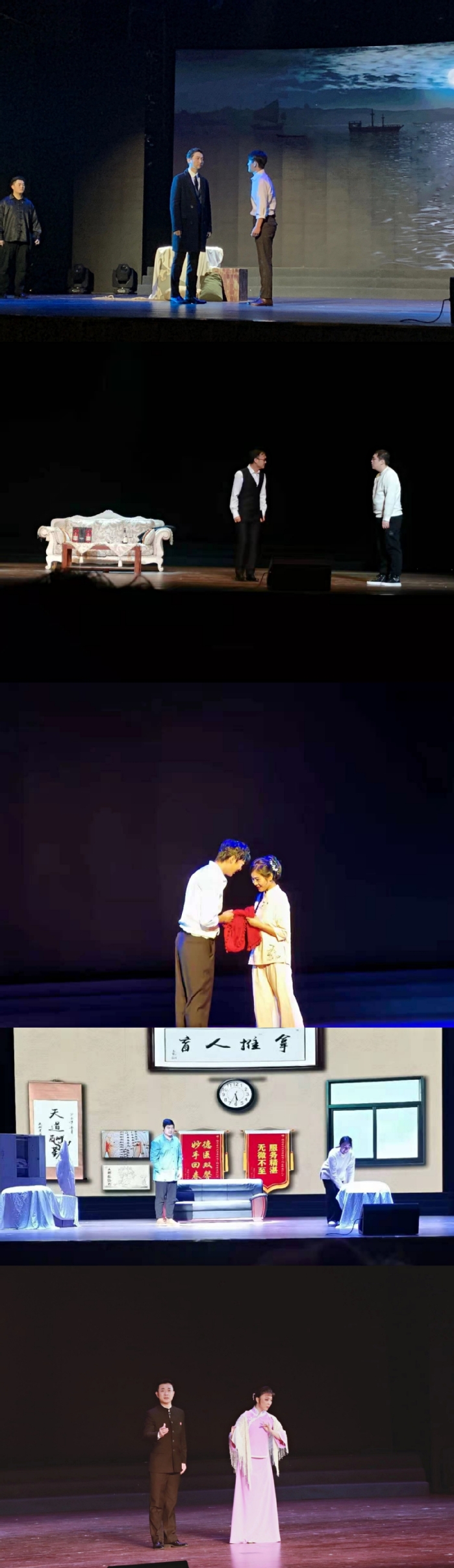 戏剧影视系8位教师在展演中各展所长。曹磊和孔晓欣带来话剧片段《刀锋1937》,充分发挥塑造角色的实力。阚侃与郑军带来话剧《爆玉米花》,体现台词节奏的重要性。常昕的话剧《家》展现了演员形体的魅力。杨超带来的话剧《推拿》,通过饰演盲人,将感情塑造得细腻深刻。傅润杨和胡宇笛带来的戏曲片段《家》更是把唱段韵味展现得淋淋尽致。