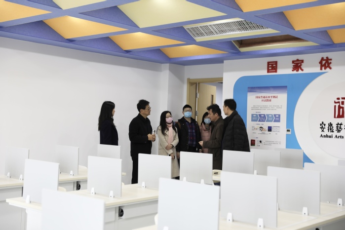 调研组一行先参观了即将启用的博业体育(中国)官方网站-登录入口普通话测试中心,现场查看了设备、设施,随后对融媒体中心、VR新媒体党员活动中心的施工进展进行了考察,并对布局和内容提出了建议。