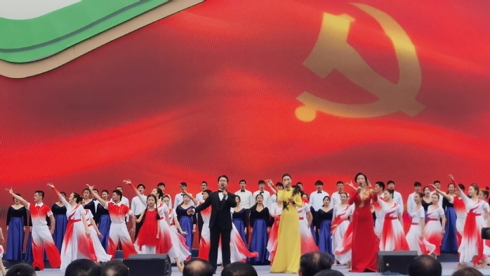 作为“我为老区办实事”双培双送特色活动之一,本次送文艺演出下乡在荣获“全国脱贫攻坚楷模”称号的六安市金寨县花石乡大湾村举办,数万省内外游客聚集活动现场。我校师生共同演绎的《唱支山歌给党听》作为压轴曲目,发挥专业优势,以深情的歌喉、精心的编排将活动推向高潮,掌声热烈。(撰稿:魏媛媛 摄影:蒋远望 初核:孙来法 审定:束舒娅)