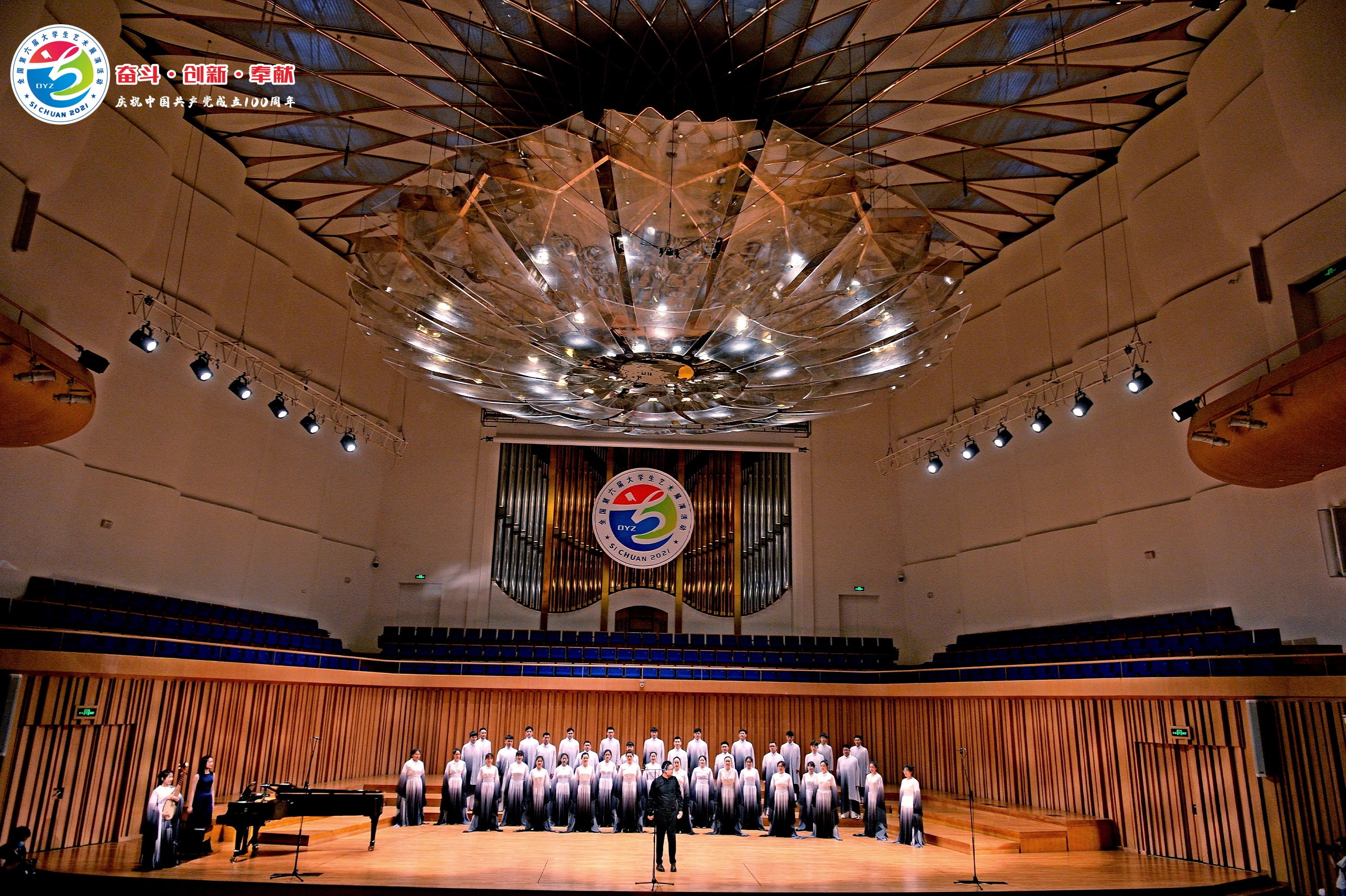 全国大学生艺术展演每三年举办一届,是目前我国规格最高、规模最大、影响最广的大学生艺术盛会。今年正值中国共产党成立100周年,本届“大艺展”共有全国189所高校约8000余人参赛,规模大、人数多、影响广,是全国大学生为庆祝中国共产党百年华诞的一次空前盛会。