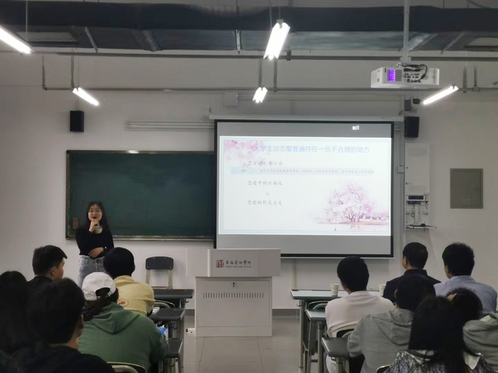 吕凤丽讲述了大学生心理建设的几个主要环节,以大学生人际关系为切入点,引导同学们客观认识自我。她以朋友的身份与同学们探讨大学生的恋爱心理,系统地介绍了焦虑等心理压力的由来及调节途径。