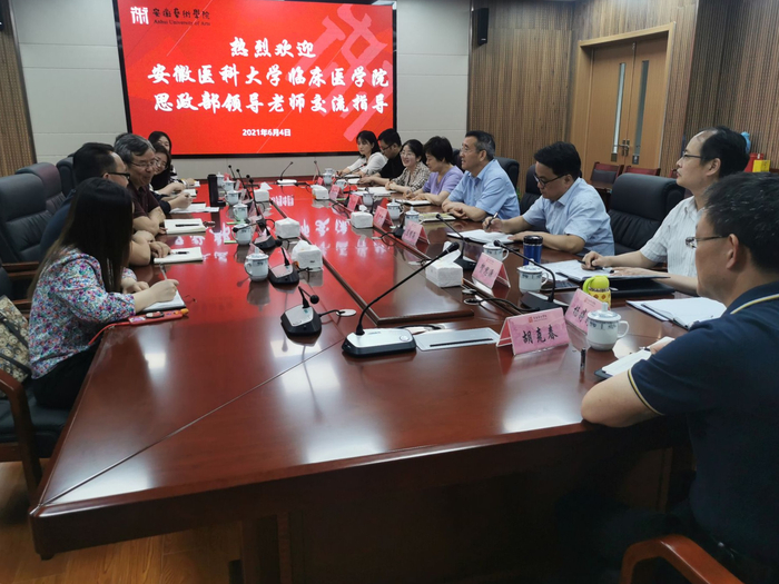 6月4日下午,安徽医科大学临床医学院思政部主任王兆良教授一行6人来我校交流研讨。校党委副书记、院长樊嘉禄,党委委员、宣传部部长吴孔铎,人事处处长吕中华,科研处处长陈明海,马院副院长陈昀岚及部分教师代表参加交流会。会议由陈昀岚主持。