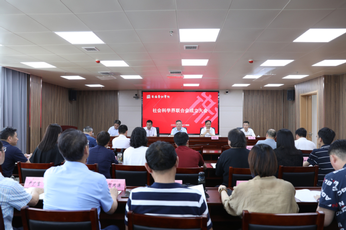 6月24日下午,校社科联成立大会在综合楼717会议室举行。省社科联党组书记、常务副主席洪永平,党组成员、副主席江涛一行到会指导。校党委书记周明洁,党委委员、副院长柳友荣出席会议。党委副书记、院长樊嘉禄主持成立大会。