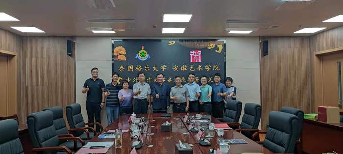 6月25日下午,我校与泰国格乐大学表就中外合作办学项目在综合楼823会议室进行洽谈。泰国格乐大学中方代表、校党务负责人沈端良、行政负责人张晶以及人事处、外事办、继续教育中心等有关部门负责同志出席会议。