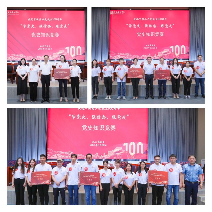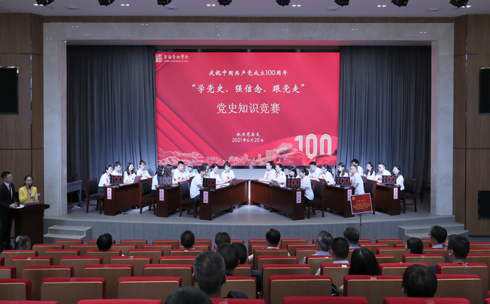 6月28日下午,机关党总支在综合楼报告厅举办庆祝建党100周年“学党史、强信念、跟党走”党史知识竞赛决赛。校党委书记周明洁,校党委副书记、院长樊嘉禄,党委委员、副院长柳友荣,党委委员、纪委书记宣扬,党务负责人沈端良,行政负责人张晶及机关全体党员参加活动。
