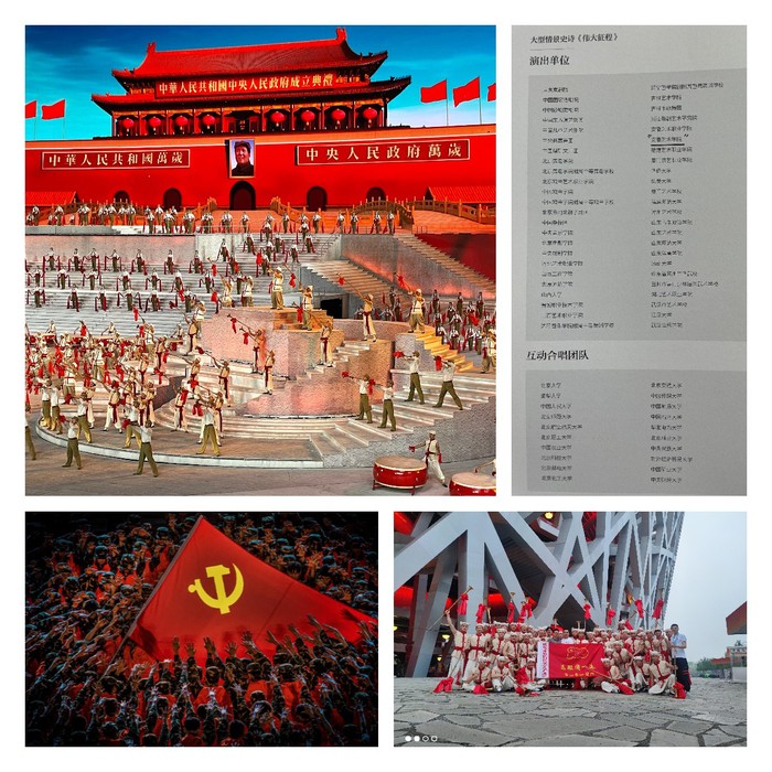 6月28日,由中宣部、文化和旅游部、国家广播电视总局、中央广播电视总台、中央军委政治工作部、北京市主办的大型情景史诗《伟大征程》在国家体育场盛大举行。我校40名学生有幸受邀参演,历时百天封闭训练、艰苦奋战,参与舞蹈《开国大典》、合唱与舞蹈《行进的火炬》、情景舞蹈《党旗在我心中》、歌曲《领航》等4个节目的演出。