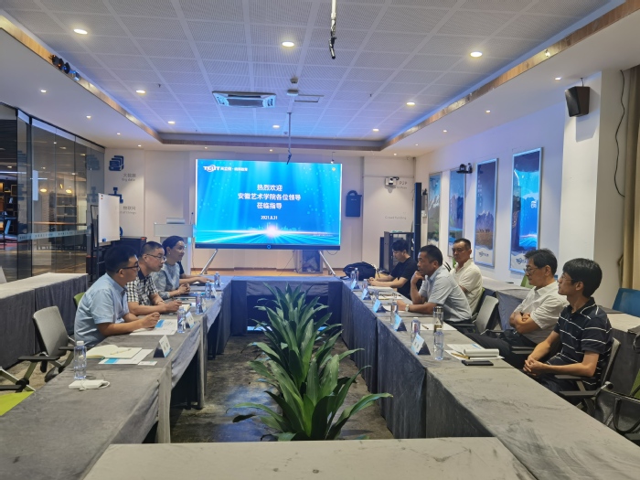 汪雅萍介绍了公司主营业务、未来发展理念、合作办学项目和人才需求情况。为进一步推进校企合作办学发展,提高人才培养质量,双方就资源平台建设、中外合作办学、文艺工作者培训、黄梅戏专业学生援疆实习实践、非全日制学历教育等方面进行了深入交流,并初步达成了合作意向。