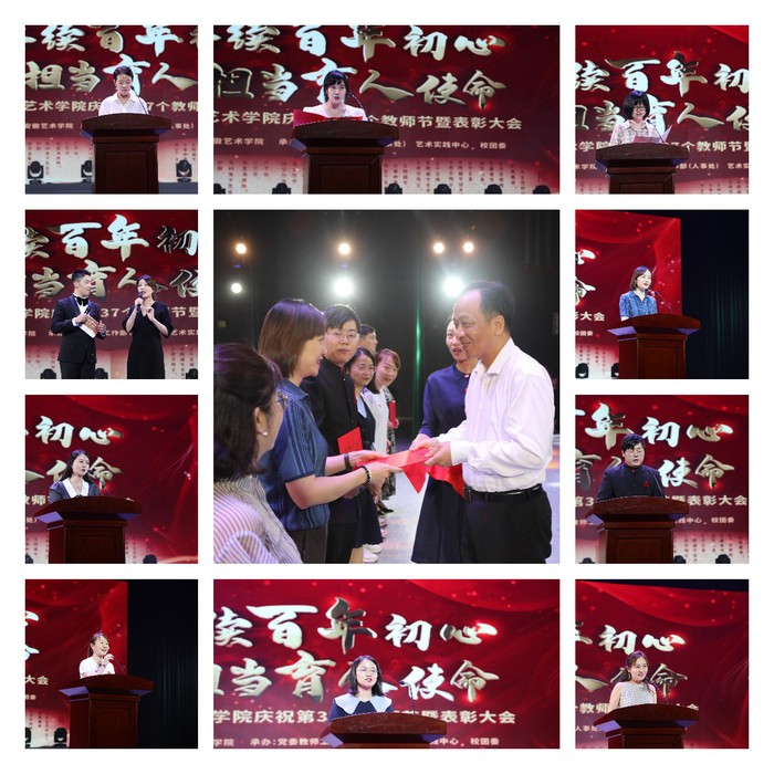 为深入学习贯彻习近平总书记在庆祝中国共产党成立100周年大会上重要讲话精神,贯彻落实习近平总书记给全国高校黄大年式教师团队代表的回信精神,赓续百年初心,担当育人使命,9月10日上午,学校在戏剧楼小剧场举行庆祝第37个教师节暨表彰大会。党委书记周明洁,党委副书记、院长樊嘉禄等党委班子成员全体出席大会。全体教职工参加会议。本次活动由党委教师工作部(人事处)、艺术实践中心和校团委承办。