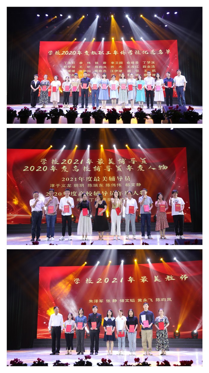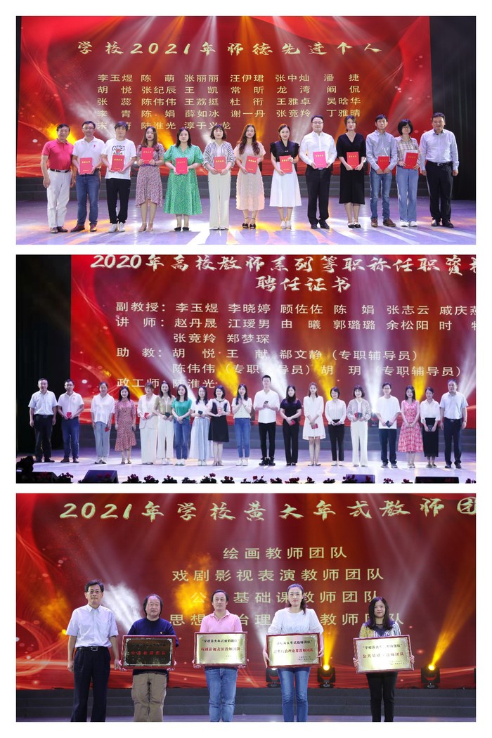 大会表彰了陈昀岚等5名最美教师,曹晓燕等6名师德标兵,李玉煜等27名师德先进个人,丁永红等31名年终考核优秀人员,淳于义龙等10名最美辅导员和高校辅导员年度人物,绘画教师团队等4个校级黄大年式教师团队。