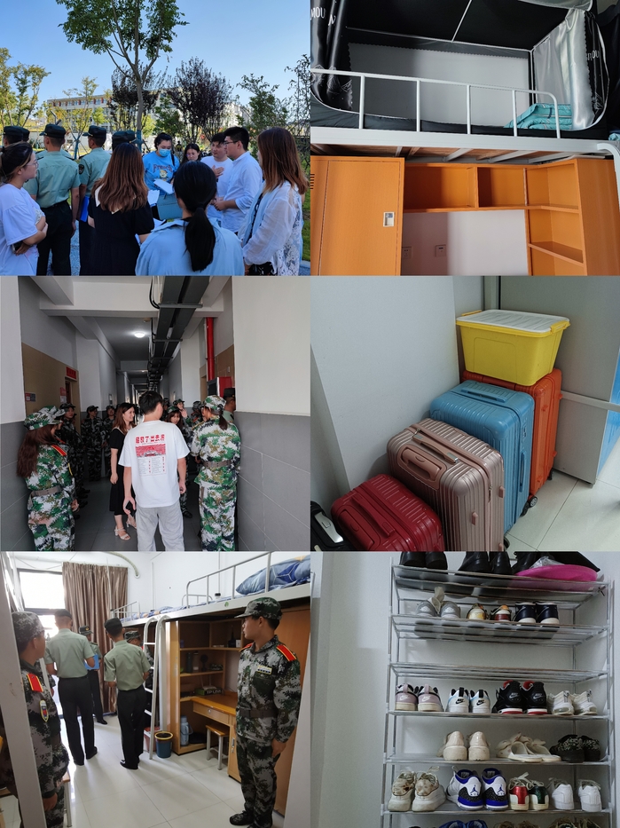 9月23日,校人民武装部牵头,联合教官、新生辅导员举行2021年军训寝室内务评比活动。