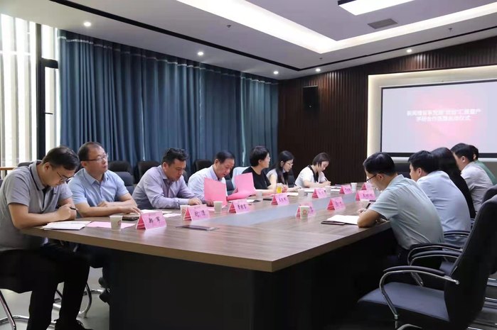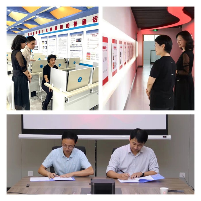 新闻播音系和图萌(上海)科技有限公司代表现场签定“安徽省金寨县红色教育资源VR拍摄制作”横向科研项目合同。新闻播音系将组建师生团队,以安徽省金寨县红色教育资源为主题,创作VR短视频。