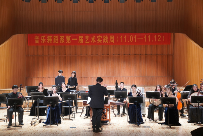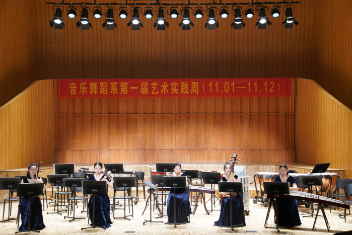 举办艺术实践周的宗旨和目的是围绕应用型艺术人才培养目标,打造艺术实践平台,提升师生艺术实践能力。国乐教研室师生为艺术实践周完美开幕,更多精彩将在未来两周陆续上演。(撰稿:朱泽军 摄影:杨可馨 初核:孙来法 审定:束舒娅)