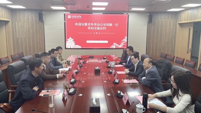 11月5日下午,安徽省外事办公室二级巡视员胡健,新闻文化处处长程怀君,俄罗斯圣彼得堡华人华侨联合会副会长、圣彼得堡安徽商会会长王晶一行莅临我校交流指导工作,就加强我校与俄罗斯相关院校开展艺术交流、人才培养等方面进行深入交流,并就与俄罗斯艺术院校开展艺术交流合作等方面达成初步共识。
