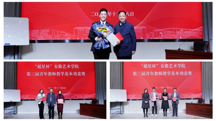 经过激烈角逐,播音与主持教研室荣获“示范教研室”称号,音乐学教研室、表演教研室、数字媒体艺术教研室、纲要与概论教研室、人文与科技素质课教研室荣获 “优秀教研室”称号。新闻播音系宋秋熠荣获一等奖;美术设计系李倩、戏剧影视系张静荣获二等奖;音乐舞蹈系张珂、马克思主义学院陆淮光、公共教学部丁翔荣获三等奖。