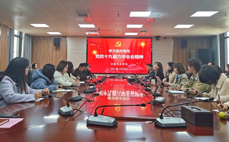 12月9日中午,校党委副书记韩军在综合楼716会议室为美术设计系宣讲党的十九届六中全会精神和省第十一次党代会精神。