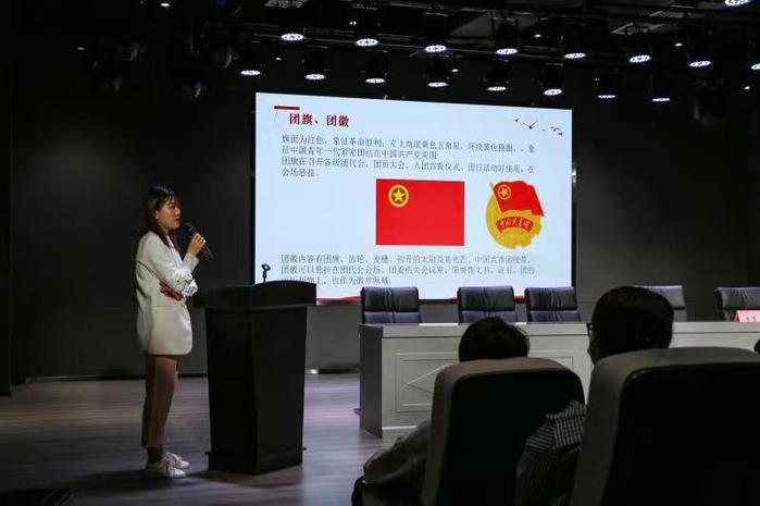 音乐舞蹈系教师赵艳艳带领学员唱团歌,嘹亮整齐的歌声将课堂气氛推向高峰。团委挂职副书记孙静结合中国共青团百年发展历史,讲授新时代团员应有之作为。
