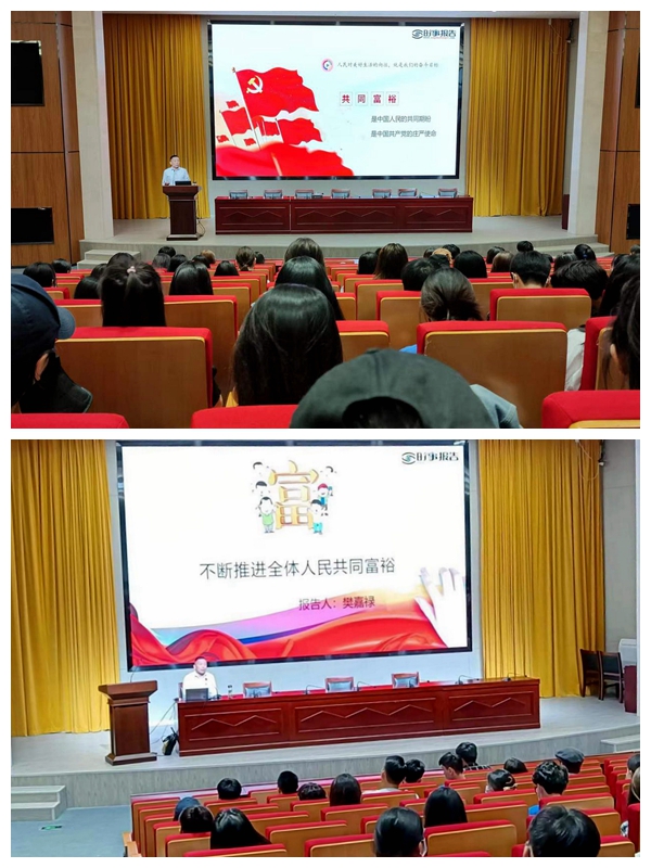 5月9日、18日晚,樊嘉禄在学术报告厅分别为戏剧影视系19级黄梅戏专业、20级表演专业和21级表演专业学生讲授思政课。樊嘉禄以《不断推进全体人民共同富裕》为题,指出要继续把“做大蛋糕”和“分好蛋糕”两件事情办好,着力推动经济高质量发展。作为新时代大学生,要做到学好专业知识,了解国情政策,坚持吃苦耐劳,勇于开拓创新,担当责任使命。