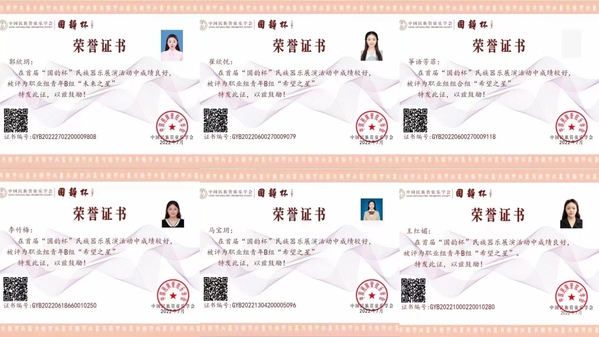 在刚刚结束的首届“国韵杯”民族器乐展演活动中,音乐学院郭欣玥、崔欣悦、马宝玥、王红媚、李竹梅五位同学及“筝语芳菲”古筝组合在职业青年组和职业组合组中斩获佳绩,分获“未来之星”和“希望之星”称号。