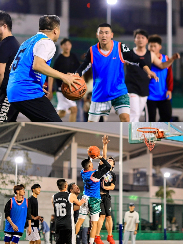 仪式结束后,音乐学院体育俱乐部的学生篮球队与教工篮球队在篮球场进行一场精彩的5V5师生篮球赛。