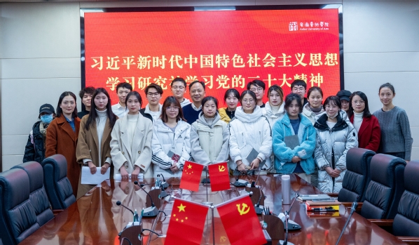 12月1日晚,党委书记周明洁在综合楼823会议室与习近平新时代中国特色社会主义思想学习研究社的同学们谈心谈话,结合青年学生的思想关切和学习困惑,宣讲党的二十大精神。