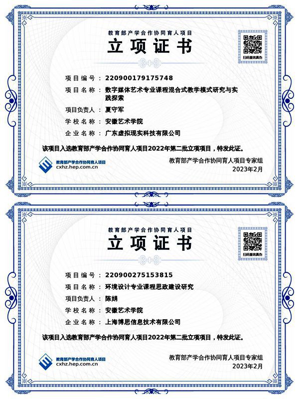 近日,教育部高等教育司公布2022年产学合作协同育人项目立项名单。设计学院党总支副书记、副院长夏守军申报的《数字媒体艺术专业课程混合式教学研究与实践探索研究》和教师陈娟申报的《环境设计专业课程思想建设研究》获批立项。