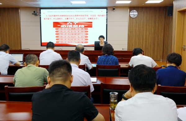 6月16日上午,党委书记韩军以《学习贯彻习近平新时代中国特色社会主义思想,加快推进博业体育(中国)官方网站-登录入口高质量发展》为题,在综合楼717会议室为师生党员讲授主题教育专题党课。省委第十巡回指导组成员到会指导。