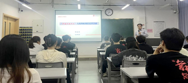 授课中,校领导旁征博引,通过生动的语言、详实的数据、鲜活的案例、相应的视频资料,以及自身的成长经历和阅历见闻,让同学们更加生动地感受到新时代十年取得的历史性成就和发生的历史性变革,达到了以深刻的思想吸引学生,用扎实的理论和生动的事实感染学生的教学效果。
