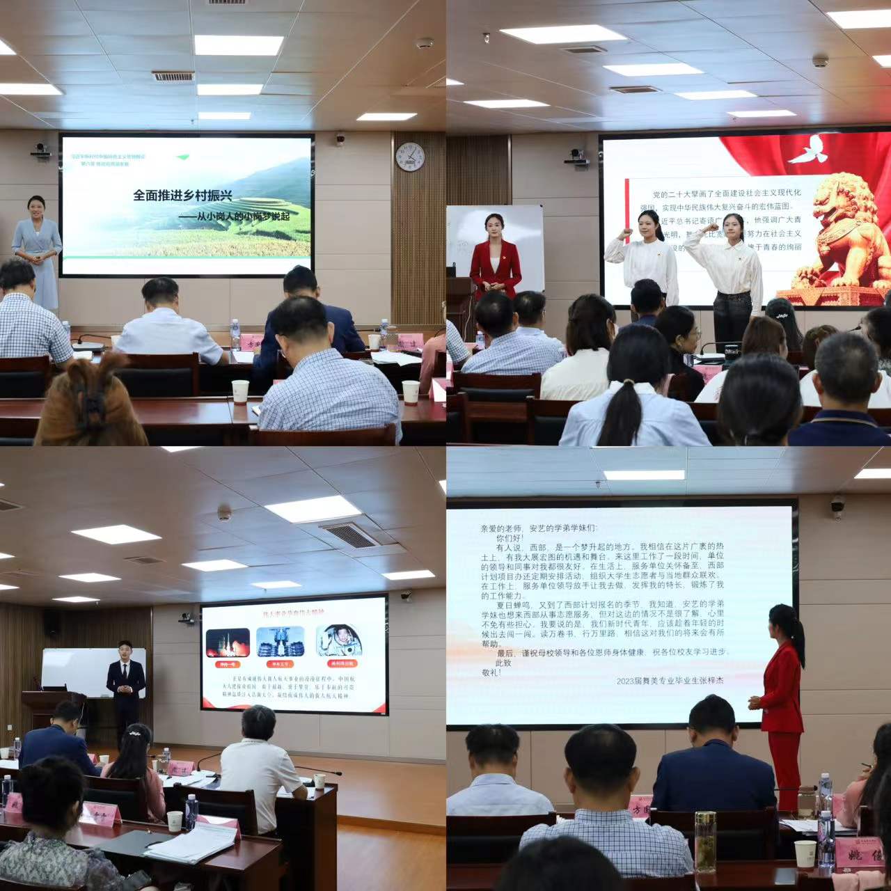 比赛现场,各代表队深刻理解“思政课的本质是讲道理”的丰富内涵,注重方式方法创新,将艺术元素有机融入专题讲授中,展现了安艺学子昂扬向上的青春风貌。经过激烈角逐,最终宋天宇组、刘洁组获一等奖,郑晓雨组等3组选手获二等奖,揭胜组等4组选手获三等奖,传媒学院获最佳组织奖。