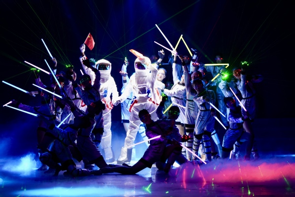 开场舞《遥望星空》,运用声光电效果和舞台的成像、演员的表演、场景的布置,让观众沉浸在现实与梦幻之间,产生无限遐想与思考,导入课程。