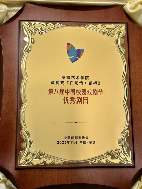 日前,由中国戏剧家协会、深圳市委宣传部、深圳市文化广电体育旅游局、深圳市文联、深圳市南山区政府共同主办的第八届中国校园戏剧节、第27届BeSeTo戏剧节暨2023南山戏剧节在深圳闭幕,学校戏剧学院青春实验剧团演出的黄梅戏《白蛇传·断桥》荣获第八届中国校园戏剧节优秀剧目。