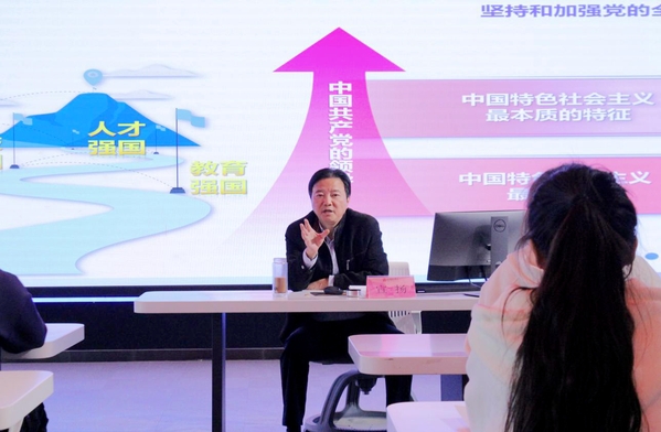 课上,宣扬鼓励同学们对社会主义现代化国家的建设进程进行思考,分别从强国建设战略部署的支撑作用、我国现阶段突出成就和高校的主体作用等维度提出问题。同学们或低头沉思,或凝神谛听,课堂氛围融洽。