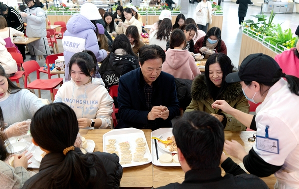 12月21日上午,传媒学院在食堂一楼举办“冬至待春风,顺问新年安”冬至节暨迎新联欢会。校党委书记韩军,校党委委员、纪委书记、监察专员宣扬与同学们一起包饺子,在欢声笑语中感受冬至的热情。