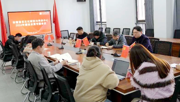安徽音乐文化研究与传承中心副主任曹晓燕汇报2023年度部门工作情况及2024年建设思路。与会人员结合各自的专业方向为安徽音乐文化研究与传承中心的建设发展提出建议,为安徽音乐文化的研究与传承工作建言献策。