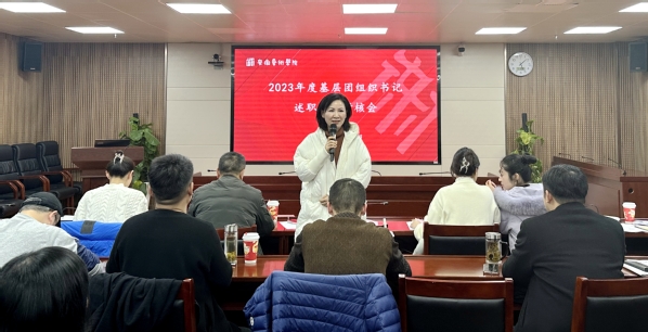 六个二级学院团总支书记进行工作述职,通过列数据、举实例等方式介绍品牌特色,分享经验做法,谋划工作思路,充分展示学校各基层团组织在思想政治引领、全面从严治团、深化团学改革、服务青年成长等方面的成效。