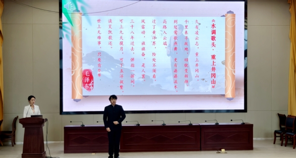 戏剧学院宣讲同学将《思想道德与法治》课程内容和万户飞天故事结合起来。结尾处,主讲人与“万户”在时空穿越中对话,向同学们发出“吾辈当自强”的号召。传媒学院宣讲同学把主题朗诵融入思政课教学中,以经典诵读为主线进行讲解。当台上宣讲的同学慷慨激昂地朗诵着《水调歌头·重上井冈山》时,观众们纷纷举着手机拍照录像,记录下这一幕。