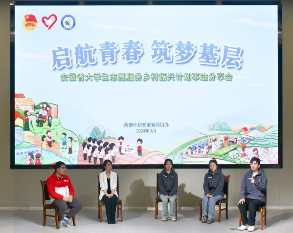 活动伊始,在宣传片《逐梦皖美乡村 绽放青春芳华》中,现场师生共同走进西部计划,感受大学生乡村振兴计划志愿者们的青春风采。之后,巢湖学院盛宇龙、皖江学院王文静、淮南师范学院王陈成和安徽理工大学徐灿同学依次作志愿服务事迹分享。西部计划安徽项目办负责同志就2024—2025年度大学生志愿服务西部计划、安徽省大学生志愿服务乡村振兴计划作情况介绍,并与现场师生展开交流,就相关问题作解答。