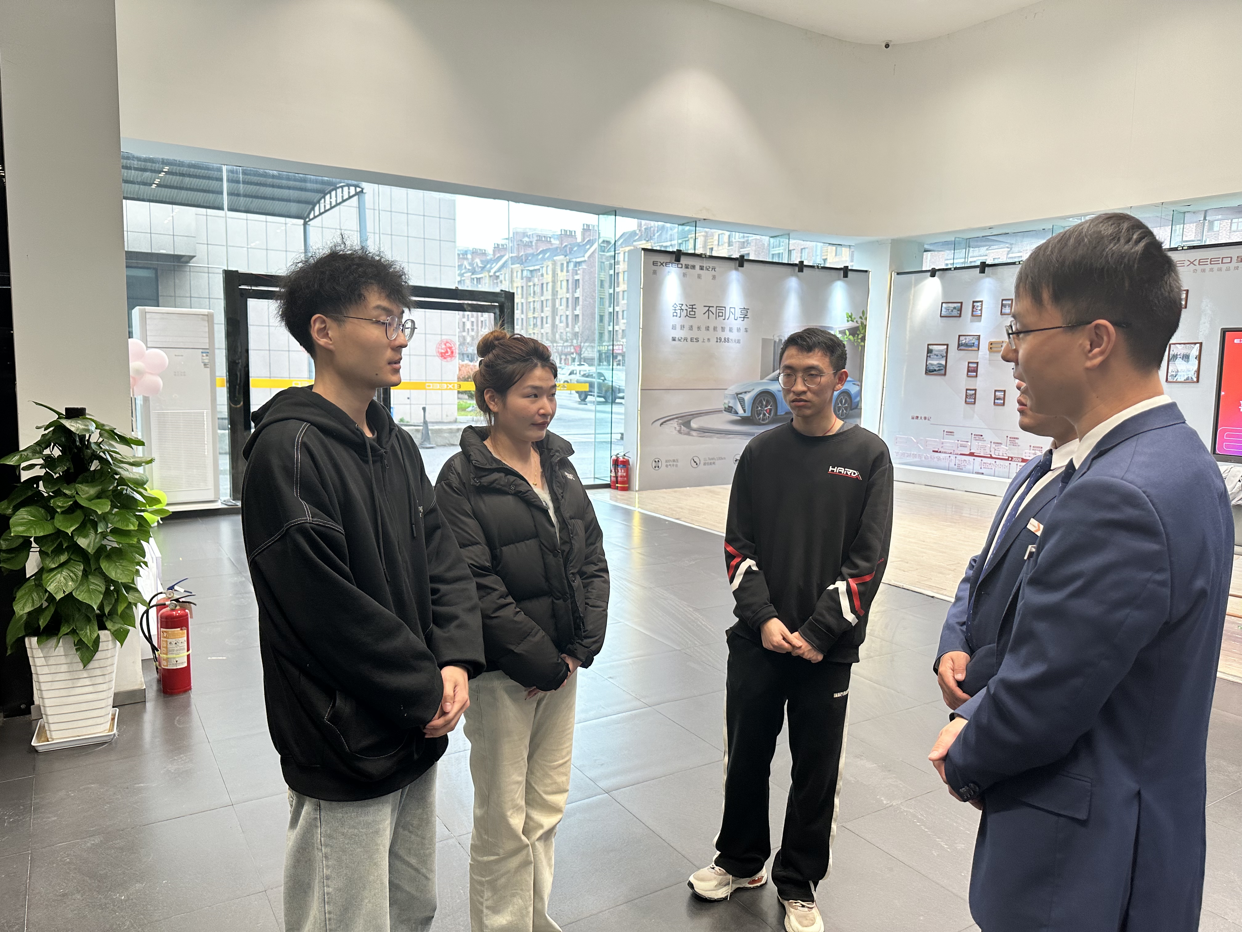 (设计学院实习学生在奇瑞汽车总部展厅了解末端销售知识)