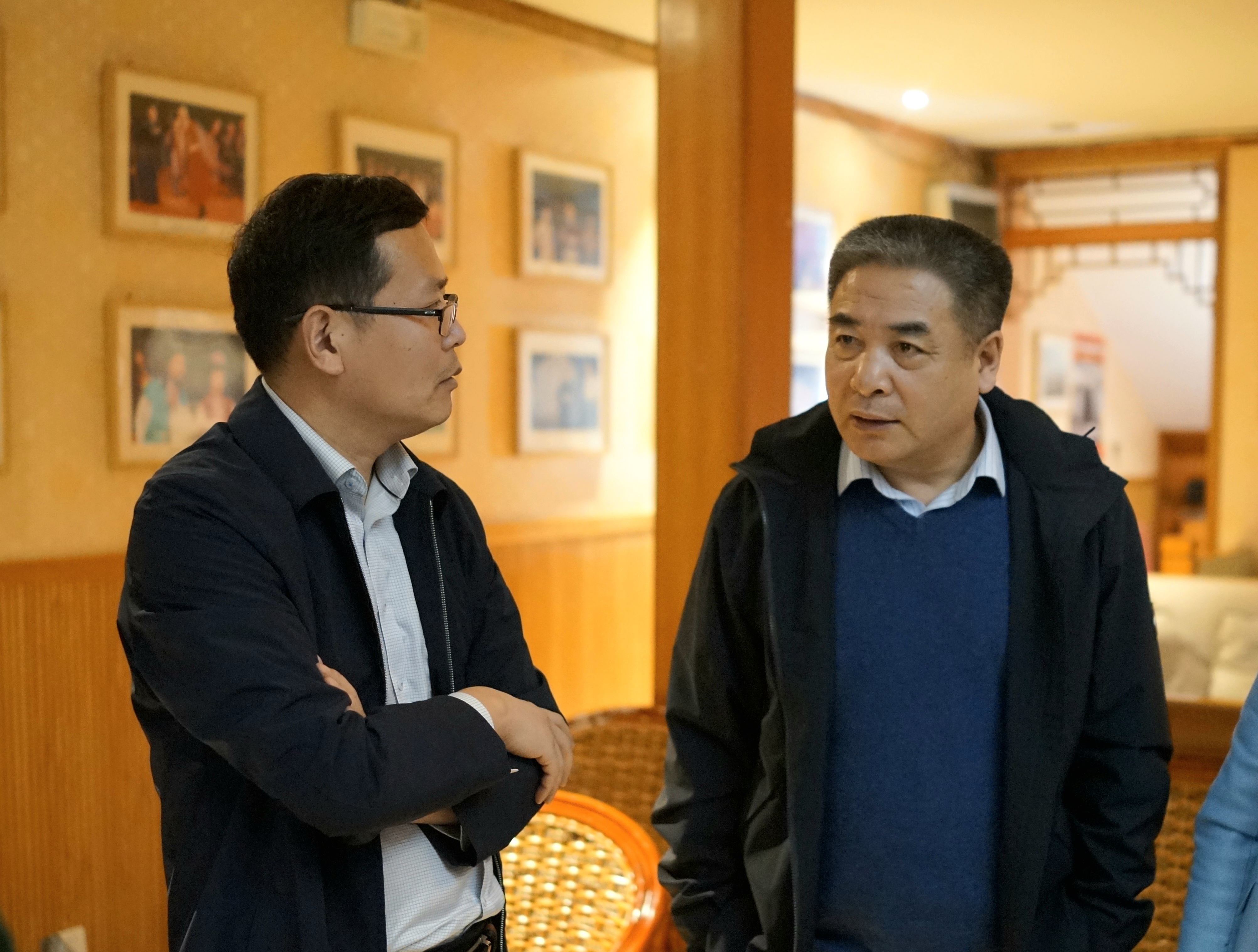 (柳友荣与安徽省黄梅剧院党委书记范伟交流产教融合)