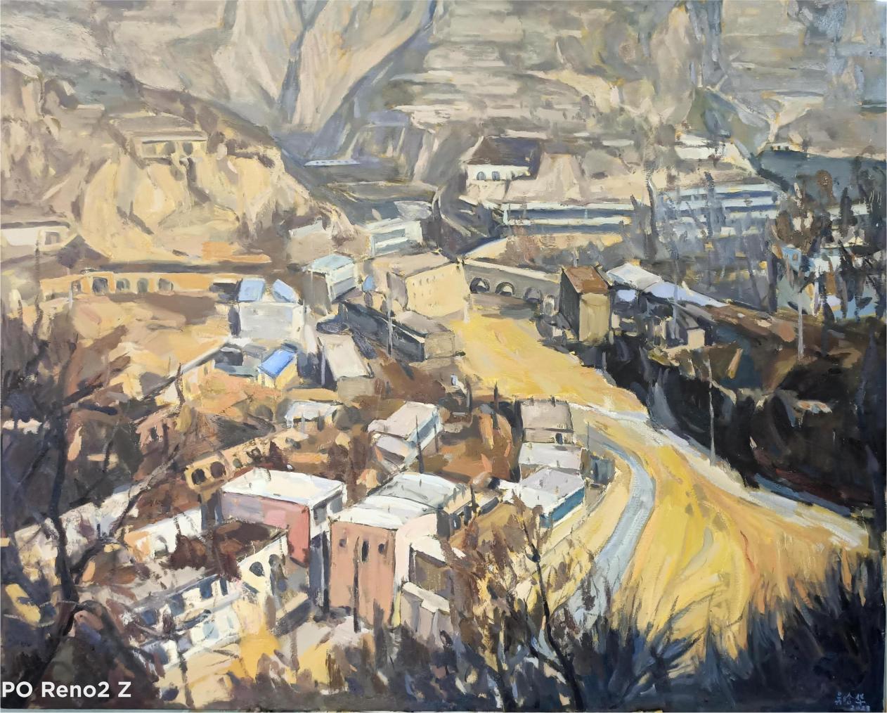 该作品是吴晗华运用个人的绘画语言,诠释了大西北的雄浑与悠远以及大地的苍茫与空灵,也反映了大西北在新时代的变迁。
