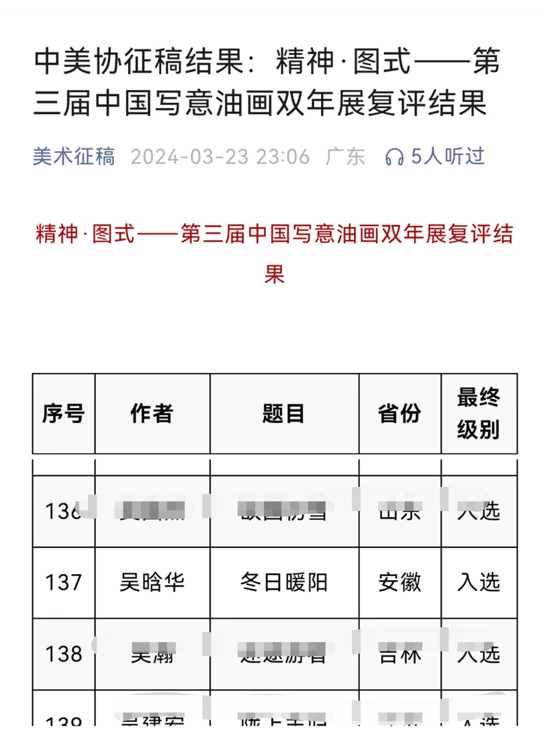 近日,安徽非遗艺术研究中心副主任、美术学院教师吴晗华油画作品《冬日暖阳》入选《精神·图式——第三届中国写意油画双年展》。