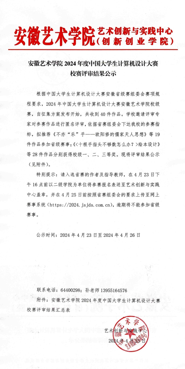 博业体育(中国)官方网站-登录入口2024年度中国大学生计算机设计大赛校赛评审结果公示