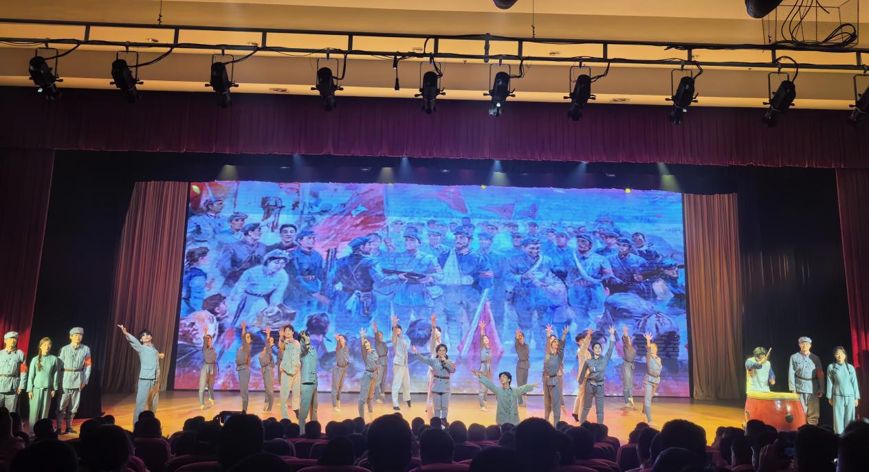 第二篇章“绿色发展”,再现老区人民在党的领导下脱贫致富的历程。独唱《春到大湾村》、情景剧《“钱”因后果》、黄梅戏《七仙女赞美大湾村》、歌舞《不忘初心》等精彩节目轮番上演,节目内容与乡村振兴、中国梦等党性教育紧密结合,营造出强烈的“带入感”,令学员沉浸其中,在思想上深受洗礼。
