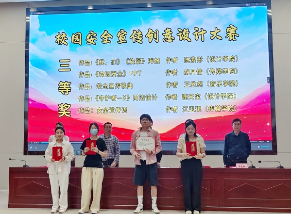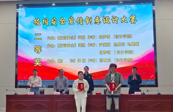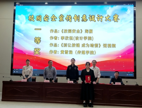 4月25日下午,学校在综合楼5楼报告厅举办校园安全宣传创意设计大赛颁奖仪式暨校园安全教育讲座。活动由保卫处处长陈雪峰主持,高教基地派出所警官陈晗、党委宣传(统战)部副部长尹广富、学生处副处长王立仁、团委副书记赵晨参加颁奖。