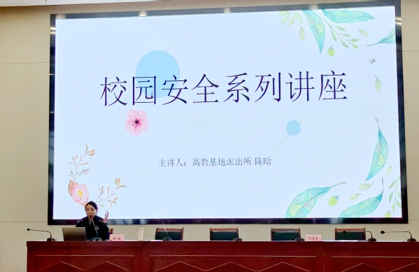陈晗分别从违法犯罪后果、校园欺凌预防、用电消防安全、电信诈骗预防、交友人身安全等方面为同学们作校园安全教育讲座。
