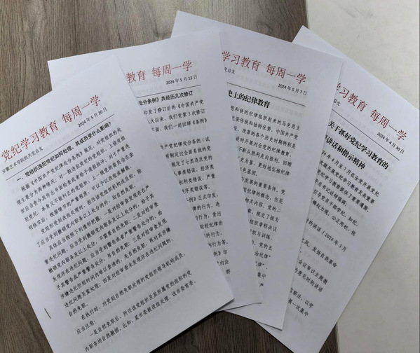 截至目前,党纪学习教育每周一学已推出4期,月党建工作提示卡推出1期。