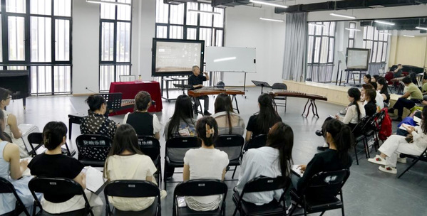 近日,音乐南楼202室举办民乐示范公开课,音乐学院党总支书记、院长李伟教授以《客家筝曲<出水莲>演奏示范与解析》为主题开讲。音乐学院古筝专业全体同学、其他专业学生以及部分教师到场观摩。