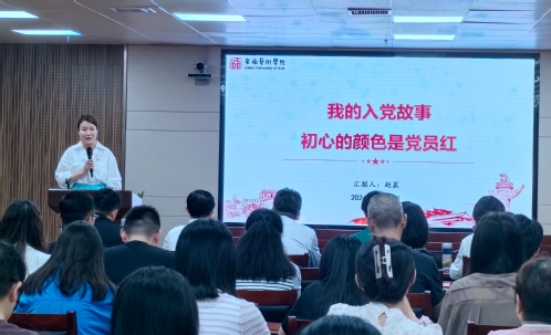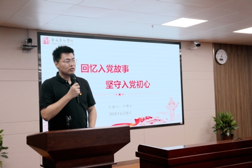 四名党员代表依次上台发言,畅谈入党故事,追忆入党初心。一个个动人的入党故事展现了他们求知求真的征途、爱党为党的心路,一段段发自肺腑的生日感言,展现了机关党总支“服务师生、建设安艺”的共同价值目标。