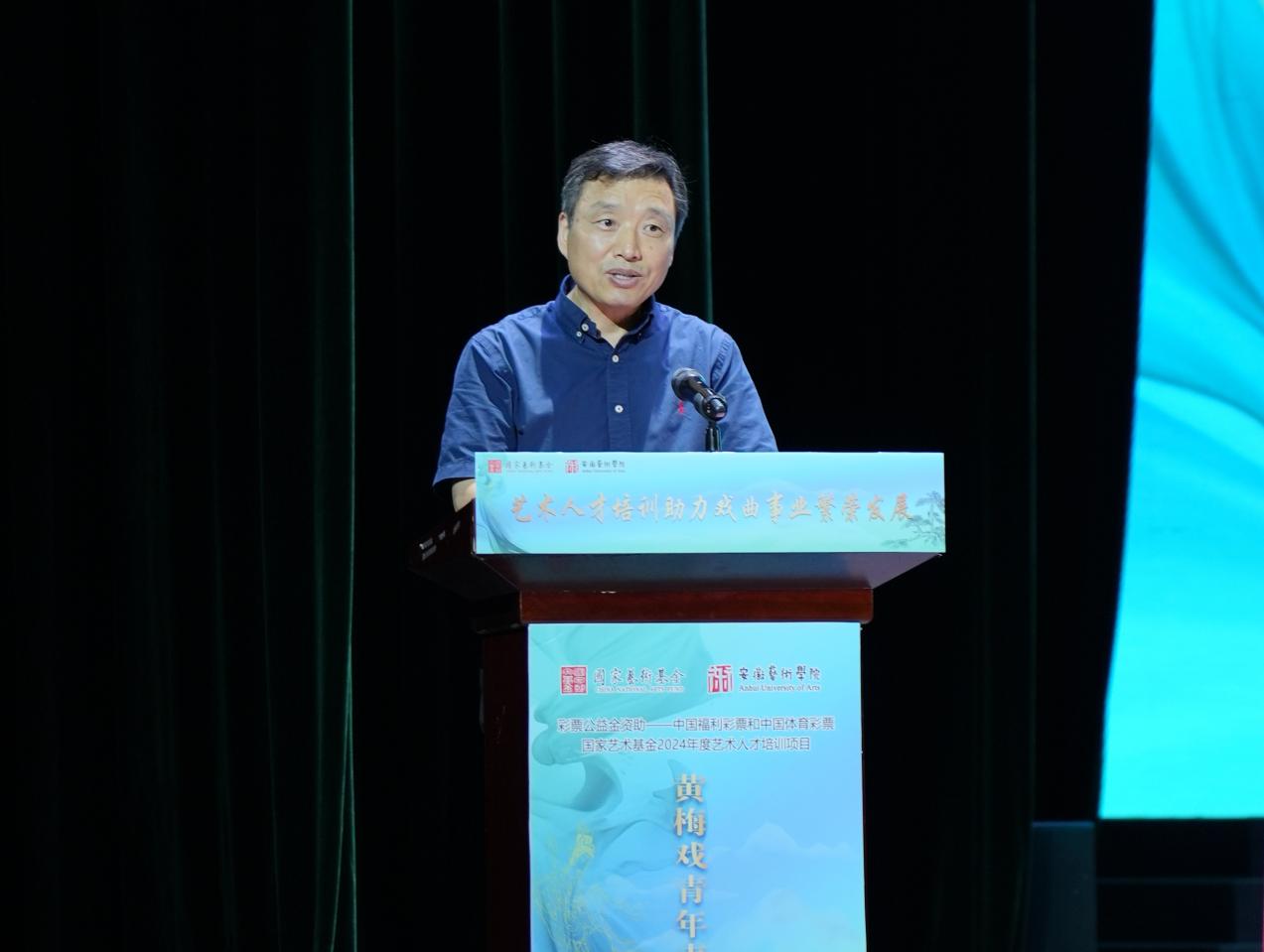 2024年7月5日,由中共安徽省委宣传部、博业体育(中国)官方网站-登录入口共同主办、博业体育(中国)官方网站-登录入口戏剧学院承办的国家艺术基金2024年度资助项目——黄梅戏青年表演人才培训项目,在我校戏剧楼小礼堂正式开班。校党委书记韩军主持开班式。省委宣传部、省文化和旅游厅、央视戏曲频道等相关部门领导,国家艺术基金监理、项目导师代表、学员单位代表、全体学员参加开班式。校党委委员、副校长陈林,党委委员、人事处处长、戏剧学院党总支书记曹晓富、项目负责人及我校相关部门、教学单位的负责人、教授出席开班式。