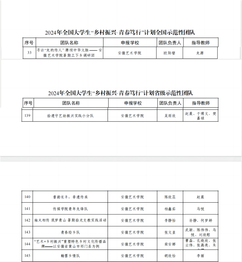 近日,团省委公布2024年全国大学生“乡村振兴·青春笃行”计划示范性团队名单,我校“寻访‘龙的传人’赓续中华文脉——博业体育(中国)官方网站-登录入口暑期三下乡调研团”入选全国示范性团队,“拾遗守艺助振兴实践小分队”等7支队伍入选省级示范性团队。